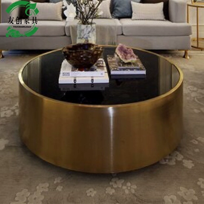 Đồng thau màu kính cường lực bàn cà phê phòng khách đơn giản căn hộ nhỏ thép không gỉ bàn cà phê bàn ​​tròn kim loại nội thất tùy chỉnh - Bàn trà