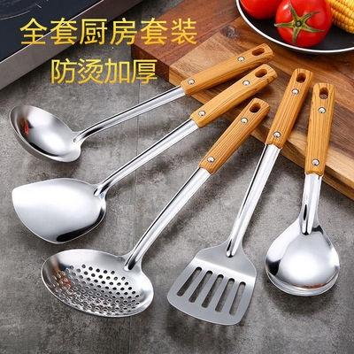 ] Dụng cụ nhà bếp bằng thép không gỉ [thìa chiên thìa có rãnh thìa thìa thìa ăn cơm múc canh nấu lẩu muôi dày đặt thìa - Phòng bếp