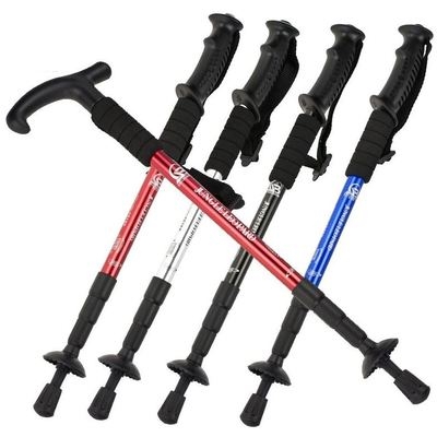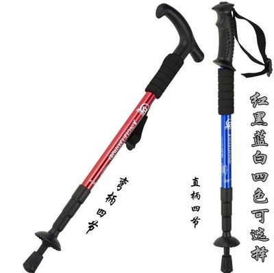 Được trang bị cọc trekking, di động siêu nhẹ, du lịch ngoài trời, thể thao thời trang hợp kim nhôm bốn đoạn, gậy chống leo núi - Gậy / gậy