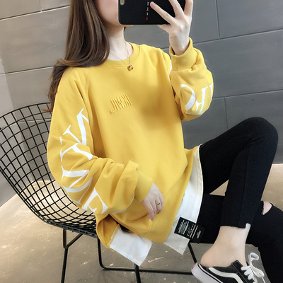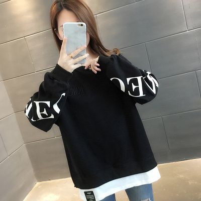 Fake hai mảnh phiên bản Hàn Quốc của cổ tròn lỏng lẻo trùm đầu áo len in chữ hoang dã áo khoác nữ 2020 mùa xuân và mùa thu - Áo len