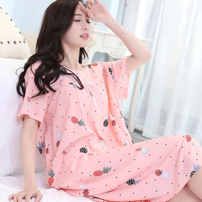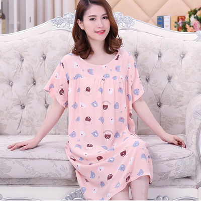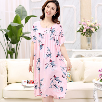 Fat mm mùa hè cotton và lanh mẹ bộ đồ ngủ cho người trung niên và người già bộ đồ ngủ mùa hè nữ nhóm dì cotton lụa tinh khiết rời kích thước lớn - Đêm đầm