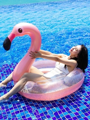 Flamingo lưới màu đỏ vòng bơi người lớn nữ dày quá khổ phao cứu sinh bơm hơi người lớn gắn nổi hàng - Cao su nổi