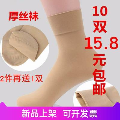 Fuzhou cao cấp 10 đôi tất mùa xuân, mùa hè và mùa thu vớ nam và nữ vớ dày chống móc lụa đen tất nhung màu da thịt - Bít tất nữ