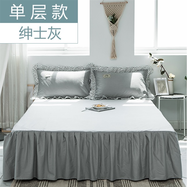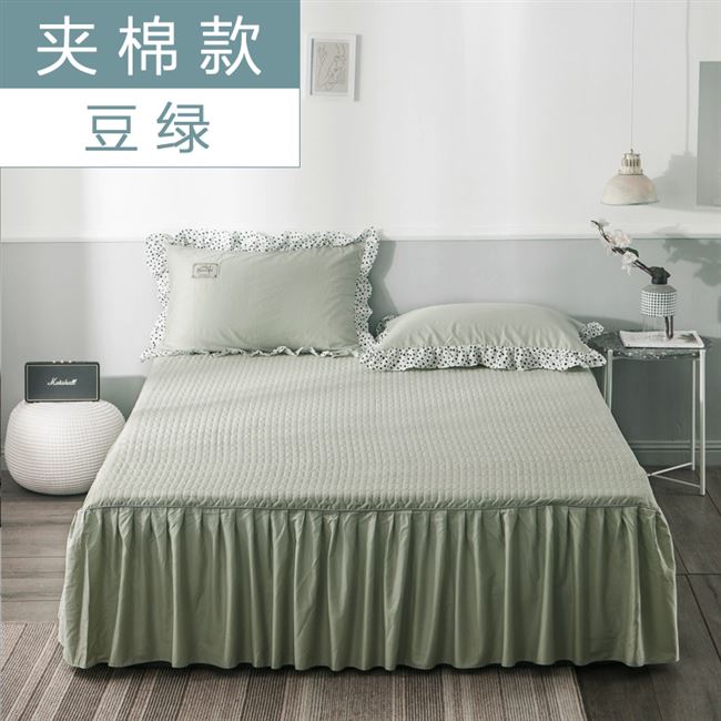 Ga trải giường dày hơn gấp đôi màu đặc bốn mùa bông tinh khiết chần bông kiểu váy bông một mảnh cộng với tấm đệm bông trải giường chống trượt - Váy Petti
