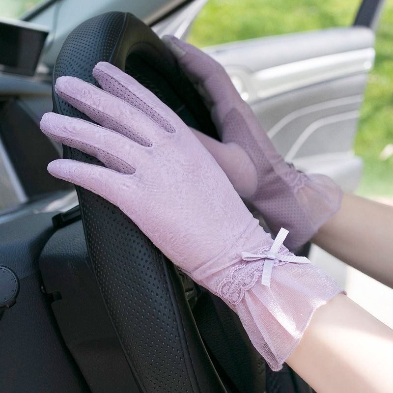 Găng tay đi xe đạp mùa hè và lái xe ren nữ chống tia cực tím Xia Bingsi màn hình cảm ứng chống trượt sexy phần mỏng thoáng khí - Găng tay