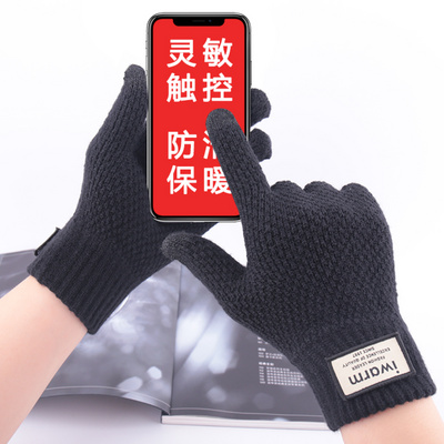 Găng tay màn hình cảm ứng mới cho nam mùa đông dày ấm áp dệt kim len chống lạnh màu đen chống mài mòn và chống gió - Găng tay