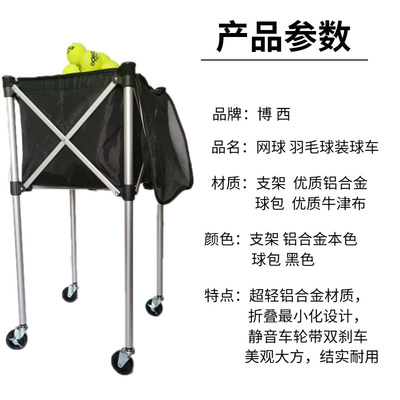 Gấp khung tennis hợp kim nhôm xe tennis xe đẩy hàng di động xe huấn luyện viên di động nhặt bóng giỏ bóng tennis đóng gói giỏ bóng - Quần vợt
