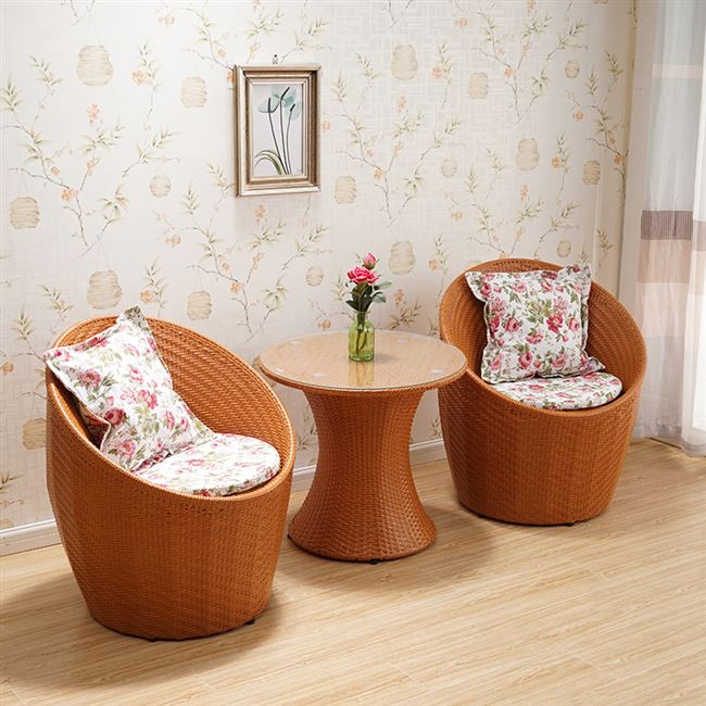 Ghế bệt Ban công Bàn ghế Giải trí Kết hợp Đồ nội thất Teng Ghế dệt Tựa lưng Sân vườn Ngoài trời Ghế đan lát Bộ ba mảnh - Bàn ghế ngoài trời / sân