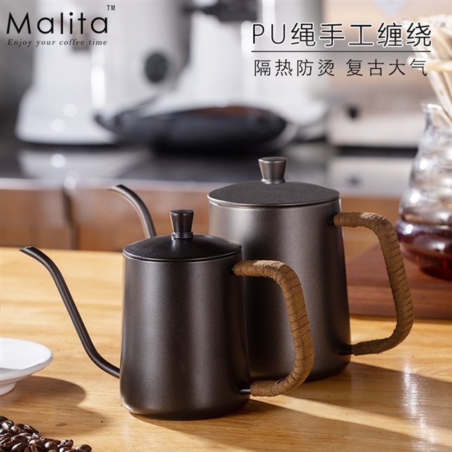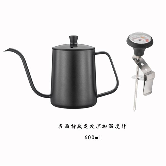 Gia dụng cà phê Bình pha cà phê tay inox 304 có nắp đậy có thể lắp nhiệt kế miệng dài miệng mỏng bình xả tay gia dụng - Cà phê