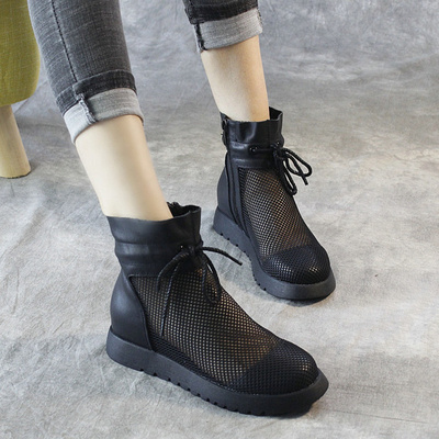Giày bốt nữ đế bằng lưới đế bệt mùa hè có lỗ, dép thủy triều thoáng khí, giày bốt nữ lưới rỗng phong cách hàn quốc - Kính khung