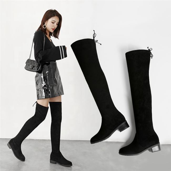 Giày bốt nữ size lớn 41-43 mùa thu đông mới béo chân cộng thêm ủng căng da ống to béo mm chân dày trên gối ủng - Kính đeo mắt kính