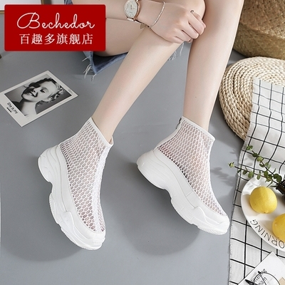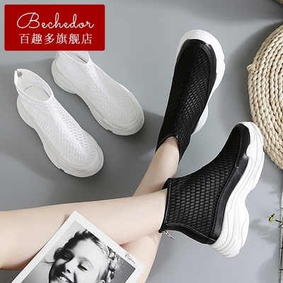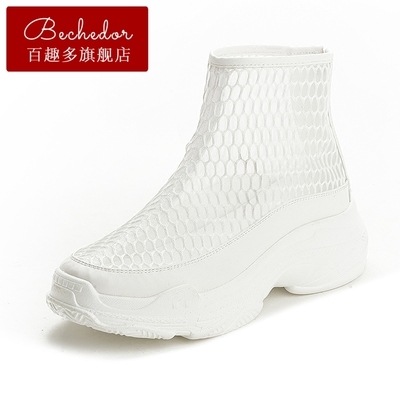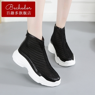 Giày cao cổ mùa thu BECHEDOR trẻ em ủng lưới rỗng thoáng khí trong giày siêu lửa ulzzang Harajuku dày phá cách - Giày cao gót