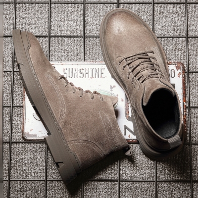Giày cao cổ nam giày cao gót Martin giày cao cổ mùa đông giày cao gót nhung tuyết giày nam công cụ giày nam mùa thu giày cao cổ hàn quốc - Giày ống