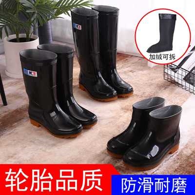 Giày chống trượt nước của nam giới thời trang overshoes nhà bếp ủng đi mưa ống cao cộng với nhung ấm ủng đi mưa trong ống cao su giày ủng nam nước mùa đông - Rainshoes