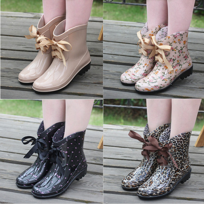 Giày đi mưa bán chạy cho phụ nữ mùa thu và mùa đông Hàn Quốc dễ thương không thấm nước giày nữ ống giữa mùa hè và mùa thu thời trang overshoes giày cao su chống trượt - Rainshoes