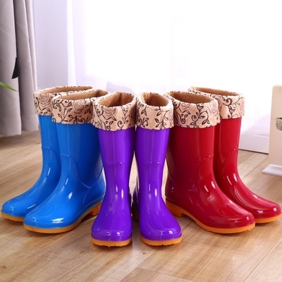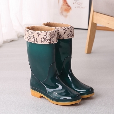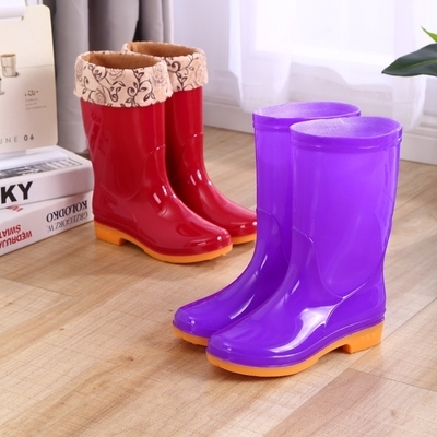 . Giày đi mưa dành cho nữ giày đi mưa ống cao giày ống dài giày nước cộng với nhung giày cao su không trơn trượt giày thời trang giày đi mưa thời trang ủng cao su ống giữa - Rainshoes