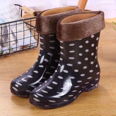 Giày đi mưa nữ mẫu thời trang mang cao thùng bảo hộ lao động cổ điển ủng dì kiểu cũ mùa xuân và mùa thu làm việc chống thấm nhìn tốt - Rainshoes