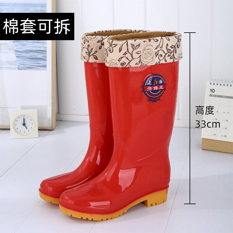 Giày đi mưa nữ ống cao ủng đi mưa có bông để giữ ấm cho người lớn giày chống thấm nước của phụ nữ ủng ống giữa của phụ nữ giày cao su chống trượt nữ giày nước - Rainshoes