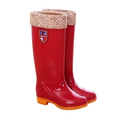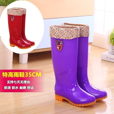 Giày đi mưa nữ ống cao ủng đi mưa nữ giày ống dài giày nước plus nhung giày cao su chống trượt overshoes phiên bản hàn quốc ống cao mùa đông - Rainshoes