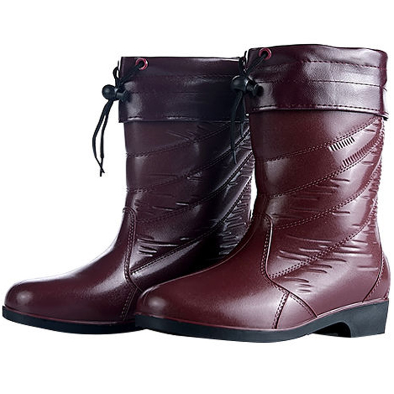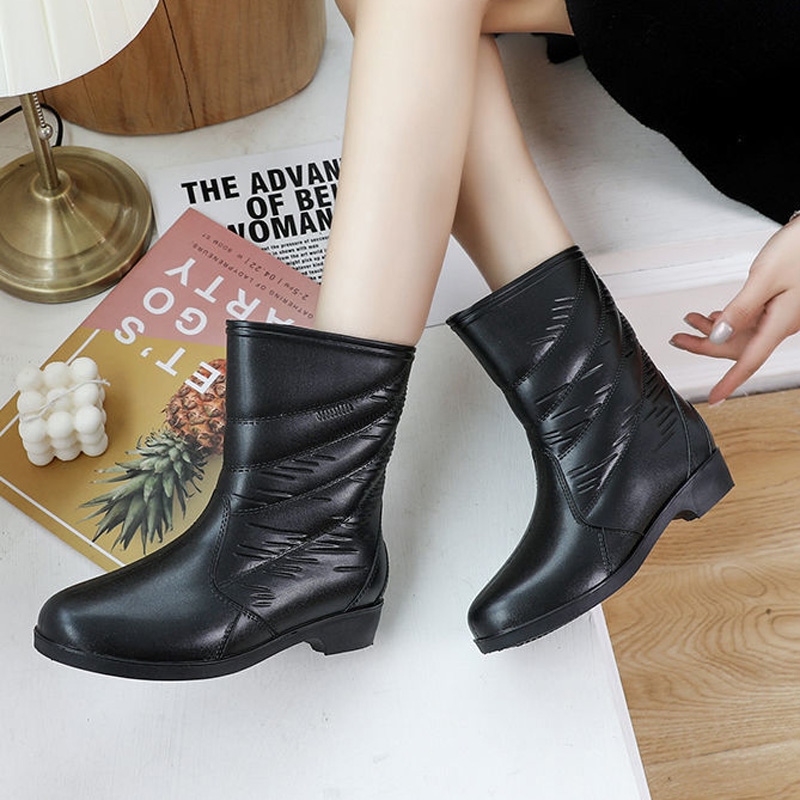 Giày đi mưa nữ ống giữa người lớn chống trơn trượt không thấm nước giày cao su ống ngắn thời trang phiên bản Hàn Quốc cộng với nhung ấm ủng đi mưa rửa xe nhà bếp - Rainshoes