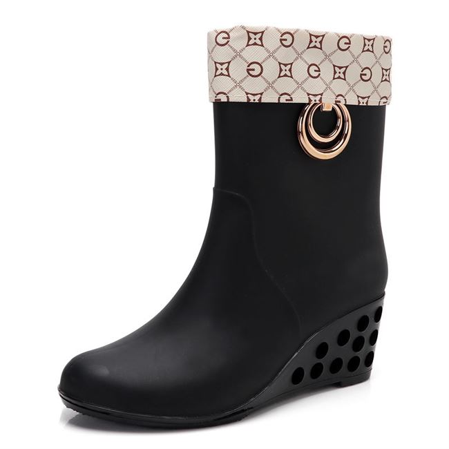Giày đi mưa phụ nữ cộng với nhung ống giữa dành cho người lớn giày đi mưa dành cho phụ nữ gót nêm Hàn Quốc chống trượt ống ngắn không thấm nước giày cao su không thấm nước overshoes giày nước - Rainshoes