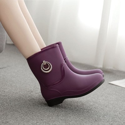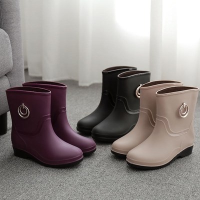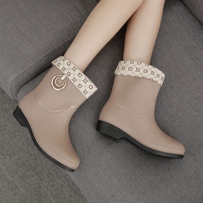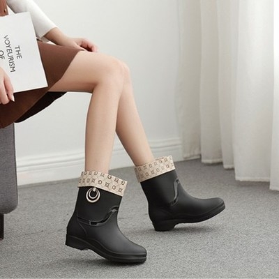 Giày đi mưa phụ nữ không thấm nước thời trang người lớn mặc ngoài ủng đi mưa giày chống trượt nước giày cao su cộng với nhung ấm áp ống ngắn phụ nữ overshoes - Rainshoes