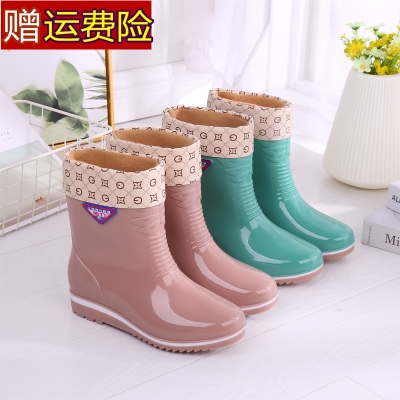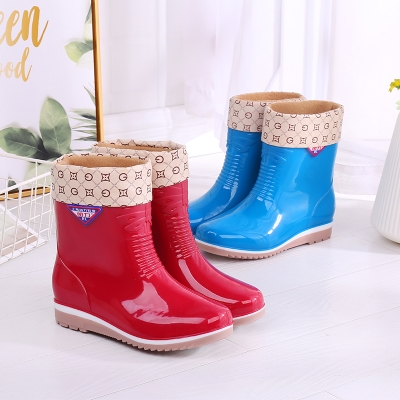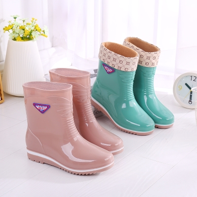 Giày đi mưa phụ nữ ống ngắn thời trang cộng với giày bông nước ống thấp cộng với nhung ủng đi mưa dành cho người lớn phụ nữ chống trượt nhà bếp giày cao su làm việc - Rainshoes
