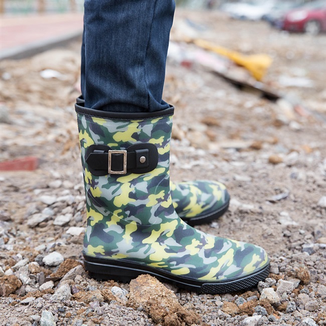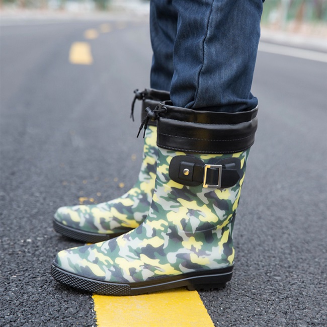 Giày đi mưa thời trang mùa xuân, mùa hè và mùa đông giày đi mưa chống trơn trượt của nam giới ngụy trang ống nước giày cao su chống thấm nước giày cao su rửa xe giày lao động - Rainshoes