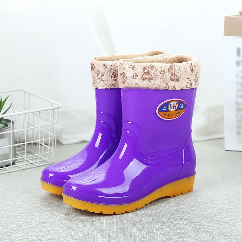 Giày đi mưa trong ống nữ cộng với nhung thời trang ủng đi mưa không thấm nước không trơn trượt giày nước bốn mùa giải trí ủng nước nhà bếp giày cao su - Rainshoes