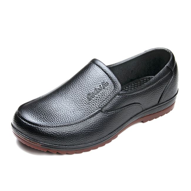 Giày nam bình thường giày nước nam giày cao su không thấm nước thấp đầu bếp giày nhà bếp không trơn trượt giày làm việc màu đen giày đi mưa cỡ lớn - Rainshoes