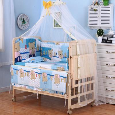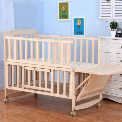 Giường cũi trẻ em đa chức năng gỗ nguyên khối không sơn bảo vệ môi trường giường nôi, bàn biến tấu, giường chơi, giường trẻ em có thể ghép nối - Giường trẻ em / giường em bé / Ghế ăn