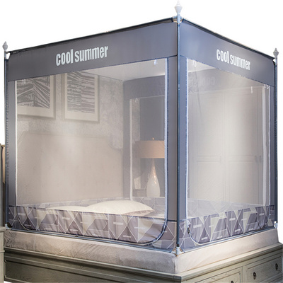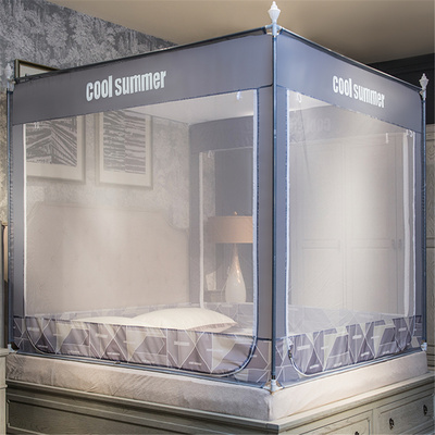 Giường lưới chống muỗi ba cửa 1,5m ngồi giường dây kéo 1,8m1,2 giường hộ gia đình trẻ em khung chống rơi lưới hoa văn công chúa - Lưới chống muỗi