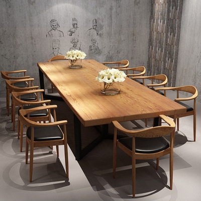 Gỗ rắn gác xép quán cà phê bàn ghế ăn phong cách công nghiệp hình chữ nhật bàn lớn bàn hội nghị bàn dài nội thất văn phòng tùy chỉnh - Bộ đồ nội thất