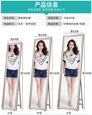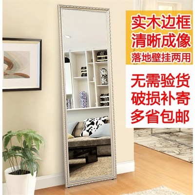 Gương soi toàn thân bằng gỗ nguyên khối đơn giản phong cách Châu Âu, gương soi sàn, gương soi thời trang, gương để giày, gương lớn treo tường, giá treo đa năng - Gương