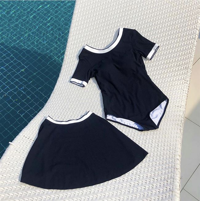 Hàn Quốc áo tắm một mảnh trong váy phụ nữ che bụng nửa tay áo bảo thủ váy một mảnh đi biển mùa xuân nóng áo tắm phụ nữ - Bộ đồ bơi One Piece