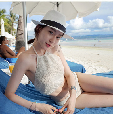 Hàn Quốc dệt kim rỗng hình tam giác xẻ tam giác eo cao che bụng thon gọn hai mảnh lưới áo tắm suối nước nóng màu đỏ phụ nữ - Bộ đồ bơi hai mảnh