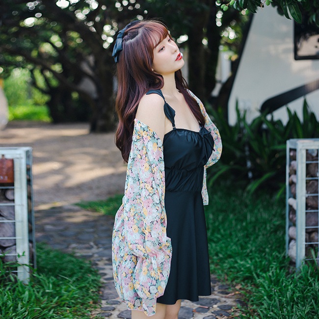 Hàn Quốc sexy plus size áo tắm nữ xẻ ba mảnh 200 kg gầy ngực lớn mỡ mm bụng áo tắm suối nước nóng - Bộ đồ bơi hai mảnh