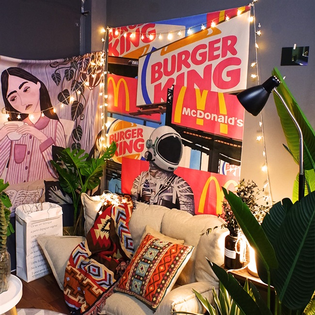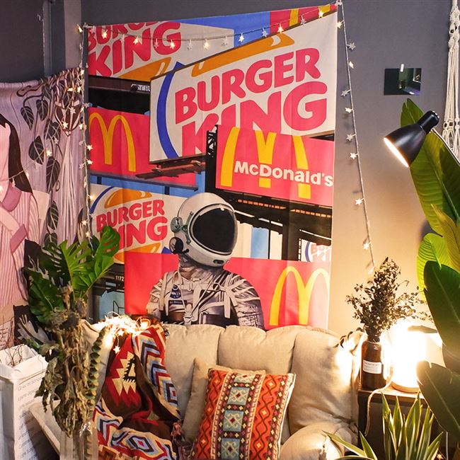 Hình minh họa trang trí trong nhà du hành vũ trụ vải treo tường thích hợp nhà trọ vải treo tường ký túc xá tân trang phòng ngủ tấm thảm màu đỏ - Tapestry