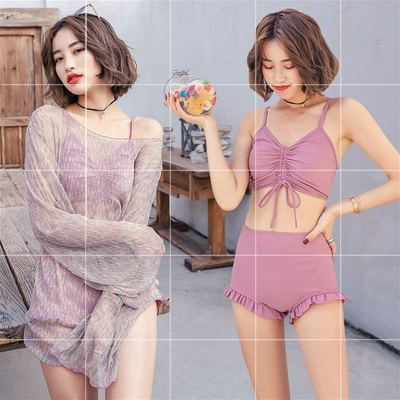 Học sinh cấp 2 váy chống nắng che bụng áo tắm nữ trong mạng người nổi tiếng cổ tích fan bộ ba mảnh học sinh gầy - Bộ đồ bơi hai mảnh