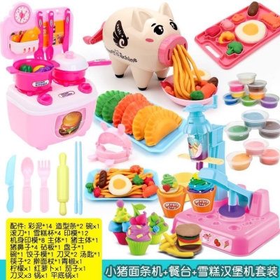 Học sinh tiểu học chơi với máy làm kem mì. Máy làm kem làm bánh kem mẫu giáo bằng đất sét màu bùn - Đất sét màu / đất sét / polymer đất sét,