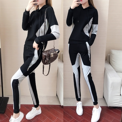 Hồng Kông mua quần áo thể thao phù hợp với phụ nữ mùa thu 2020 thời trang mới áo len có mũ trùm đầu lỏng quần dài Hàn Quốc hai mảnh phù hợp - Thể thao lông cừu / jumper
