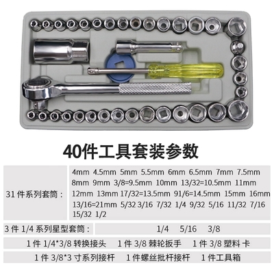 Hộp dụng cụ sửa chữa ô tô 40 cái hộp công cụ sửa chữa ổ cắm cờ lê kết hợp đa chức năng bộ công cụ sửa chữa ô tô cầm tay - Bộ sửa chữa xe đạp điện