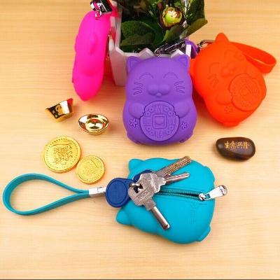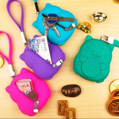 Hộp đựng thẻ có dây kéo công suất lớn hộp đựng thẻ mèo may mắn Bao đựng thẻ nam nữ dễ thương Hàn Quốc Hộp đựng chìa khóa silicon đa chức năng D hoạt hình - Trường hợp chính