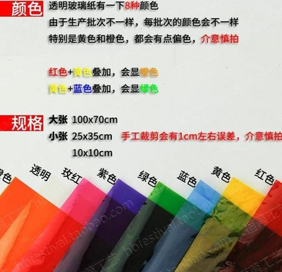 Tổng cộng có 7 tờ mỗi màu với 25x35cm7 màu ngoại trừ trong suốt