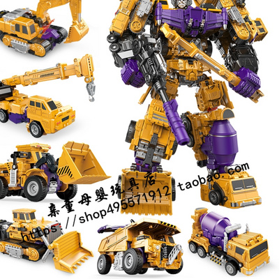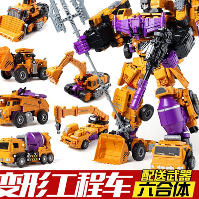Jinjiang lớn và nhỏ Lishen robot sáu trong một trộn kỹ thuật máy ủi máy xúc mô hình xe cần cẩu - Đồ chơi robot / Transformer / Puppet cho trẻ em