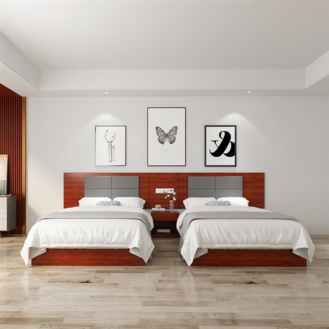 Khách sạn nhận đặt làm trọn bộ nội thất phòng tiêu chuẩn giường ngủ cho phòng khách sạn Côn Minh, tủ tivi, bàn treo quần áo, tủ đầu giường - Nội thất khách sạn