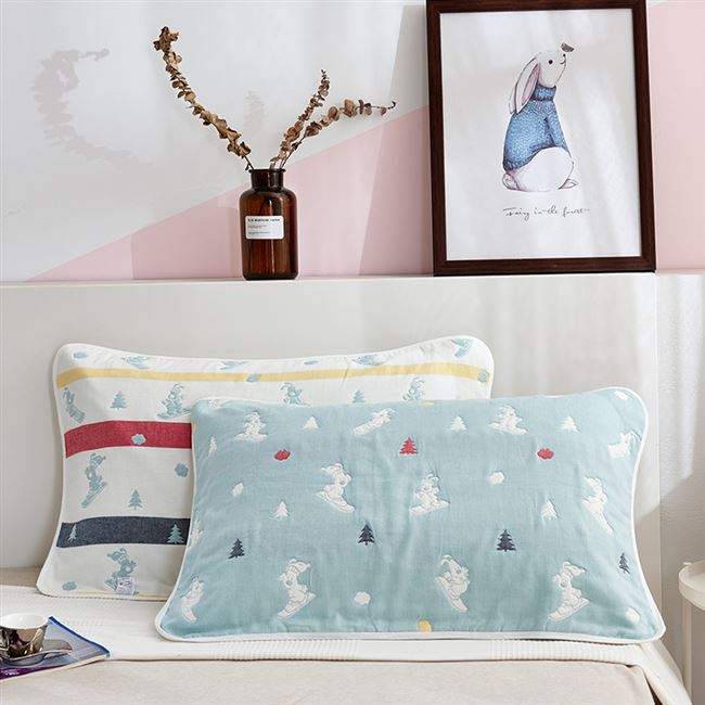 Khăn gối gạc 6 lớp một đôi bông cotton gia dụng dày dặn bốn mùa khăn gối người lớn đơn giản chung khăn - Khăn gối