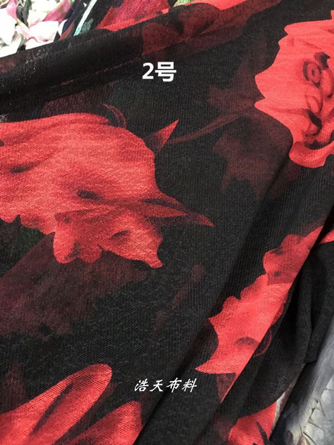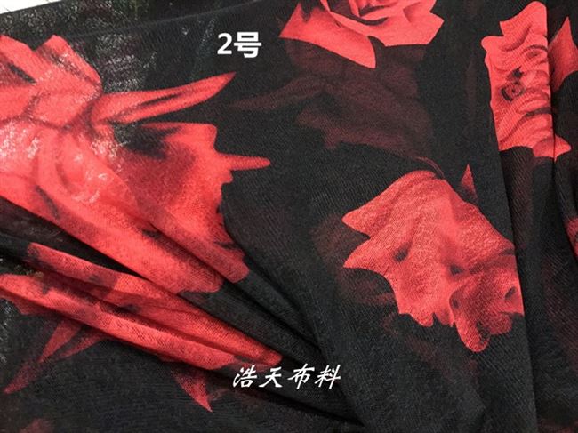 Khăn in váy mới vải lưới thô phía trên váy khiêu vũ kéo dài màu đen phía dưới màu đỏ lưới thô 1 - Vải vải tự làm