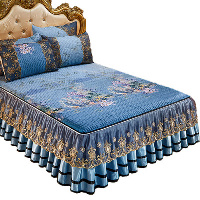 Khăn trải giường ren mùa hè ba mảnh chiếu điều hòa không khí lạnh băng lụa chiếu trải giường gấp và bung váy giường 1,8m phong cách Châu Âu - Trang bị tấm