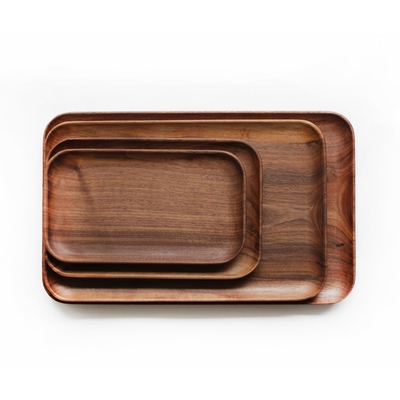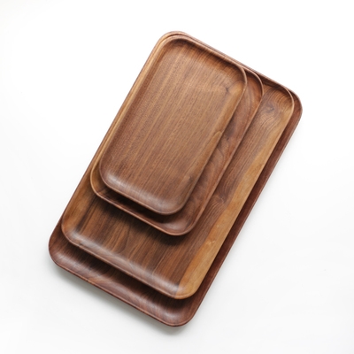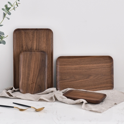 Khay Đĩa hình chữ nhật Đĩa trà Khay gỗ Đĩa gỗ Đĩa gỗ rắn đen Đĩa ăn tối Đĩa tròn Đĩa gỗ Trái cây sấy khô Quả óc chó Nhật Bản nguyên hạt - Tấm